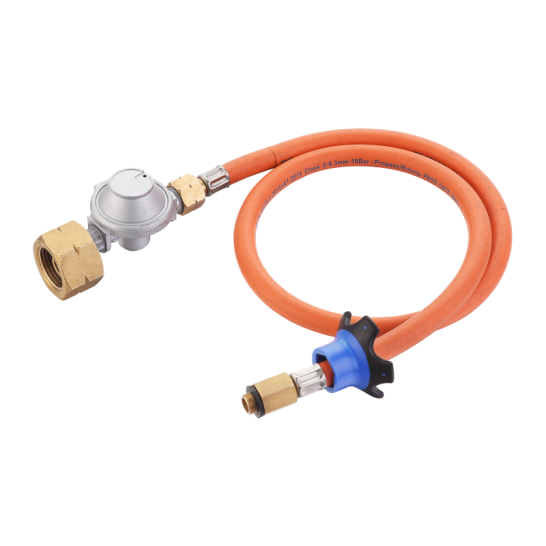 Gasschlauch mit Schnellkupplung zum direkten Anschluss des Grills an den Außenanschluss des Reisemobils oder Wohnwagens. Länge des Gasschlauchs: 5 meter