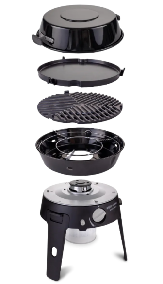 - Mitgeliefertes Zubehör: Grillrost, Grillplatte, Pfannenträger, Deckel/Pfanne, Tragetasche