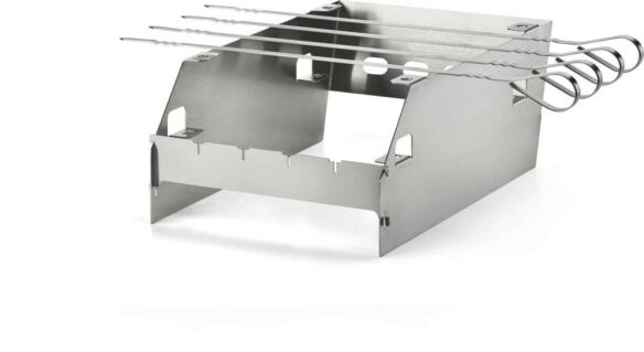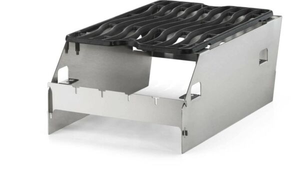 Der Einsatz lässt sich bei Nichtverwendung nach unten klappen, was verhindert, dass Grillgut ins Innere des Brenners fällt, wobei dieser weiterhin zur Verwendung mit dem Hauptbrenner zur Verfügung steht.