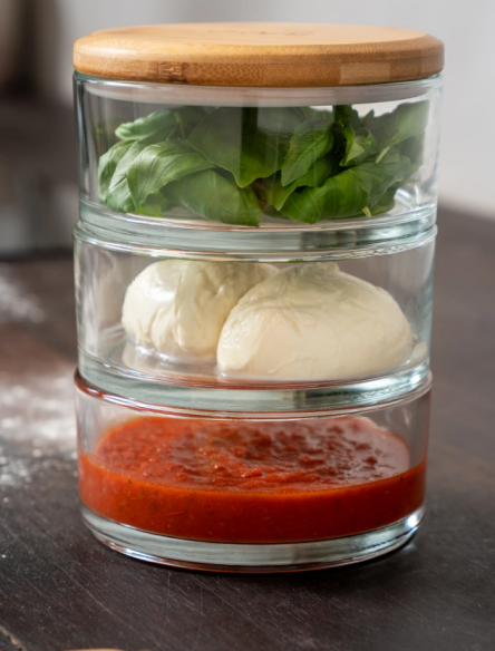 Dieses vielseitige Set ist ein Muss für alle Hobby-Pizzabäcker. Die stylischen Glasbehälter eignen sich ideal zum Gehenlassen von Pizzateiglingen (Stückgare) oder zur Aufbewahrung von frischen Zutaten.