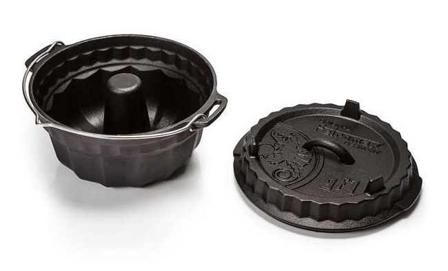 Mit der gusseisernen Petromax Gugelhupfform lassen sich saftige Kuchen, leckere Aufläufe oder Brote in der klassischen Kranzform backen. Der multifunktionale Gardeckel bietet nicht nur die Oberhitze für den Kuchen in der Draußen-Küche, sondern verfügt umgedreht über eine Tortenbodenfunktion. Mit der Form samt praktischem Deckel erweitert Petromax das Angebot seiner Gusseisenprodukte um ein weiteres cleveres und zugleich zeitloses Modell.