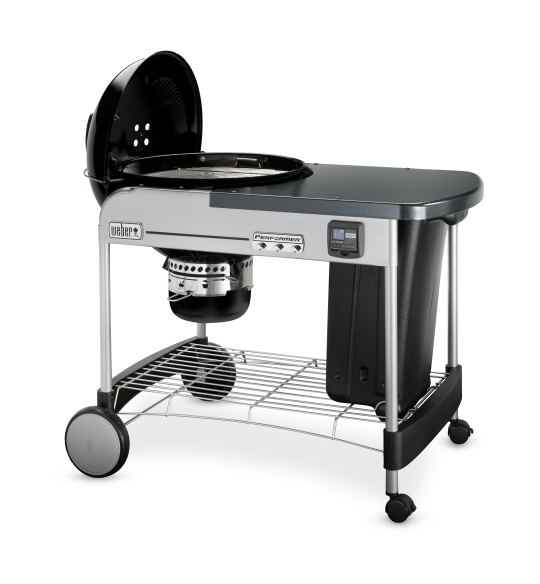 Das praktische Design des Performer Premium GBS mit offenem Rollwagen und Bodengitter bietet eine Menge Stauraum für Serviertabletts, Grillpfannen, Handschuhe und Ersatz-Wender. Und dank des integrierten, abnehmbaren LCD-Timers mit Hintergrundbeleuchtung wirst du dein Grillgut niemals vergessen. Zwei große Allwetter-Räder und zwei Lenkrollen mit Stoppfunktion runden deinen Grill ab. Damit kannst du ihn auf der Terrasse sicher hin- und herbewegen – ohne dass er wegrollt, während du deine Burger wendest. Für Kessel und Deckel des Performer Premium GBS gilt eine beschränkte 10-Jahres-Garantie auf Durchrosten und Durchbrennen.