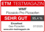 Der WMF Pizzaiolo Pro wurde vom ETM Testmagazin mit 95,4 % und dem Qualitätsurteil „SEHR GUT“ ausgezeichnet ein echtes Qualitätsprodukt für anspruchsvolle Pizzaliebhaber.